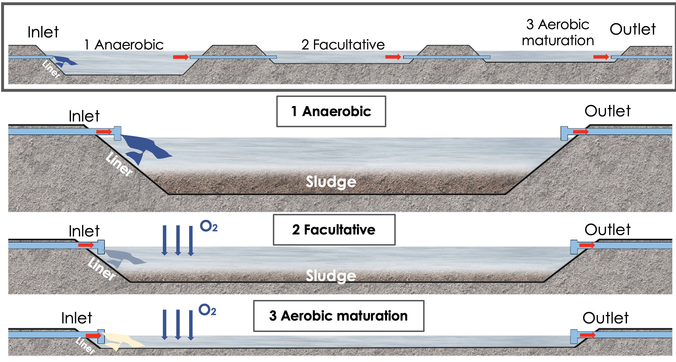 NbS46_3 Types of Wastewater Ponds Sections with Legends